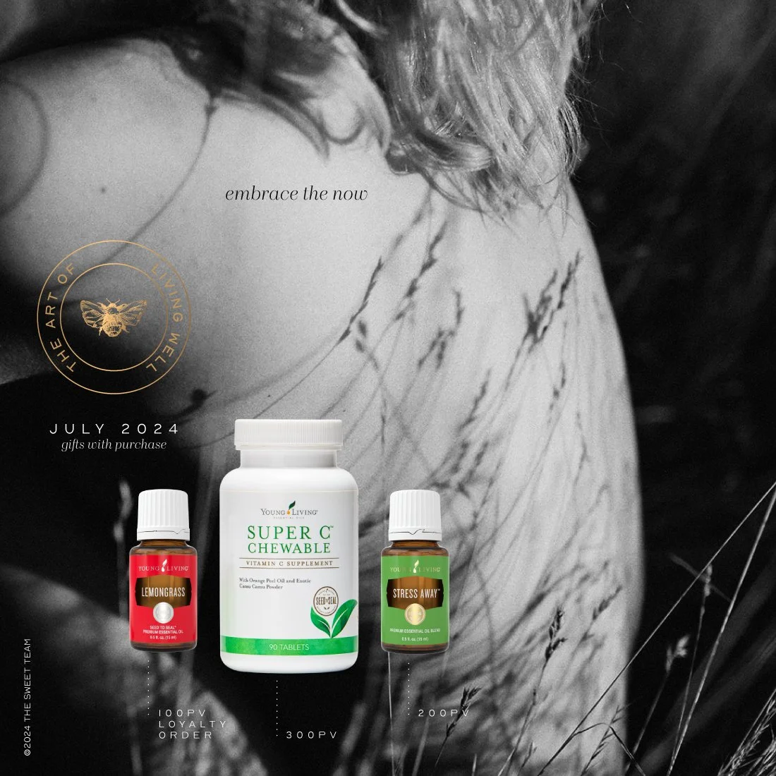 We all truly have the potential of astounding vitality…if it isn’t wasted. The Gifts with Purchase this month are designed to support this potential. When we release learned responses with Stress Away, we throw stress to the wind, and our energy reserves build. When we support the lymphatic system in flowing with ease, our bodies relax, and the reserves increase. And when we let go of toxins with Super C, our bodies can happily focus on healthy renewal.